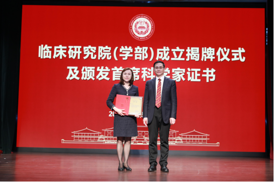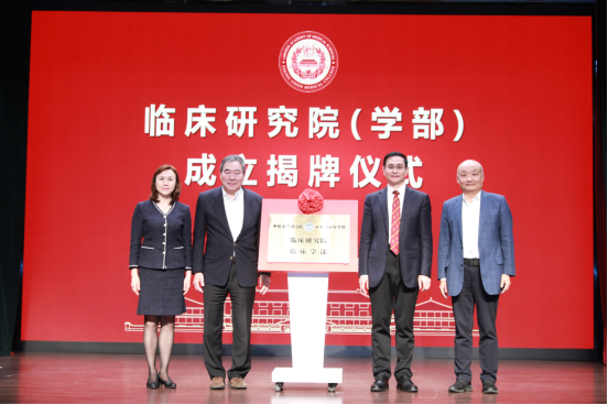 在全体与会嘉宾的见证下,吉训明院校长、蒲慕明院士、朱兰院士、宋瑞霖会长共同为临床研究院(学部)揭牌。
