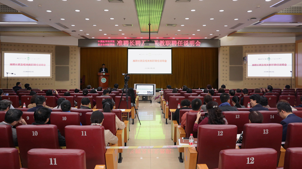 王辰院校长作动员讲话。他指出,院校将在传统的研究、临床、教学等职称系列之外,建立包括医教研系列和教研系列的准聘长聘职称系列,通过人才队伍分系列管理制度,优化队伍规模和结构,创新培养引进、评价使用、激励保障等机制,形成具有中国特色和国际竞争力的人才制度体系和发展环境,为核心基地和世界一流院校建设提供坚实的人才保障。