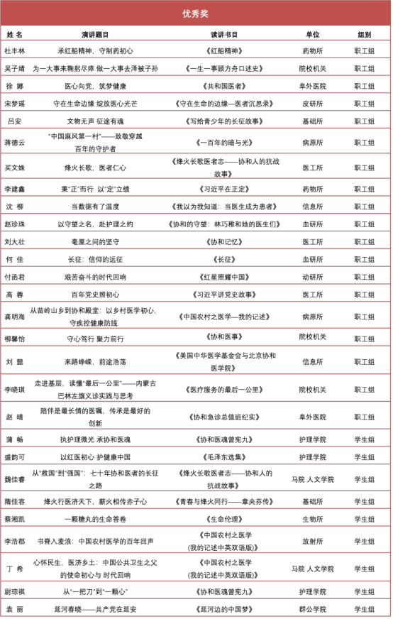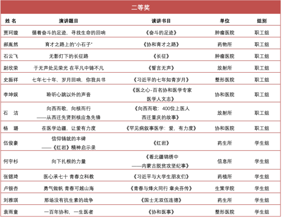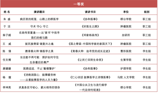 选手们围绕读讲书目,结合自身工作与学习经历,分享读书感悟、诠释医者初心,展现了院校青年职工与学生的良好精神风貌。经过激烈角逐,学生组、职工组共产生一等奖9名、二等奖14名、三等奖21名、优秀奖28名。
