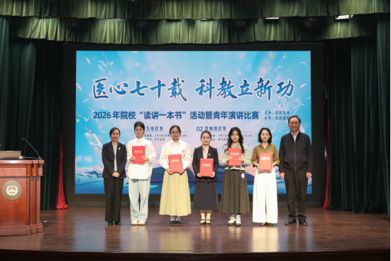 2026年4月2日至3日,2026年院校“读讲一本书”活动暨青年演讲比赛在壹号礼堂圆满落幕。今年恰逢习近平总书记对中国医学科学院作出重要指示批示10周年、中国医学科学院建院70周年,也是顾方舟诞辰100周年纪念活动正式纳入联合国教科文组织2026-2027年可参与的周年纪念活动清单,因此本次“读讲一本书”活动以“医心七十载 科教立新功”为主题,吸引了京内外院校所属单位广泛参与,72名优秀读讲人脱颖而出,在舞台上以书为媒、以讲为桥,传递医学温度与时代担当。院校党委副书记张勤出席比赛并为获奖选手颁奖。