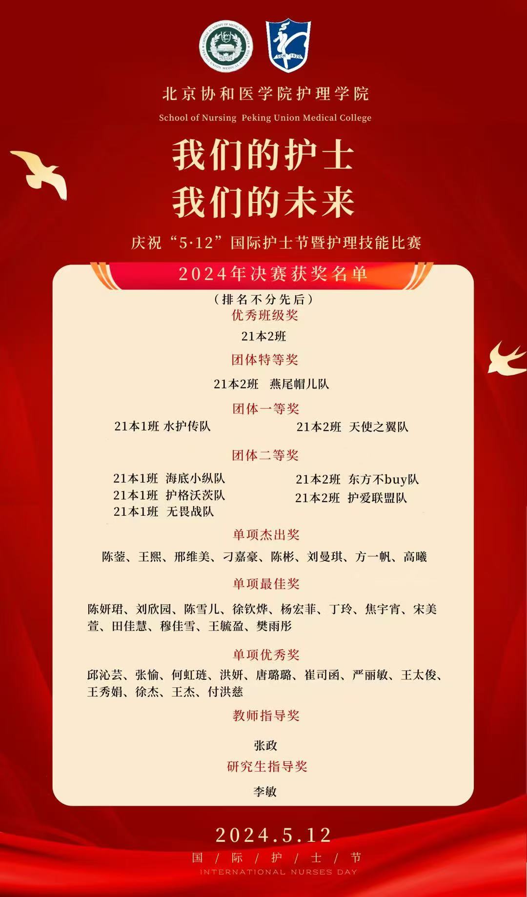 春韵渐浓,夏梦初启;护艺争锋,技展风采。2024年5月11日,北京协和医学院护理学院“我们的护士 我们的未来”庆祝“5·12”国际护士节暨护理技能比赛圆满结束。活动面向2021级本科全体同学,旨在提升学生的专业技能,搭建团结协作的桥梁,传承“勤慎警护”的优良院风,弘扬南丁格尔精神。中华护理学会理事长吴欣娟、护理学院院长李峥、副院长王欢、梁涛及师生代表观看比赛。