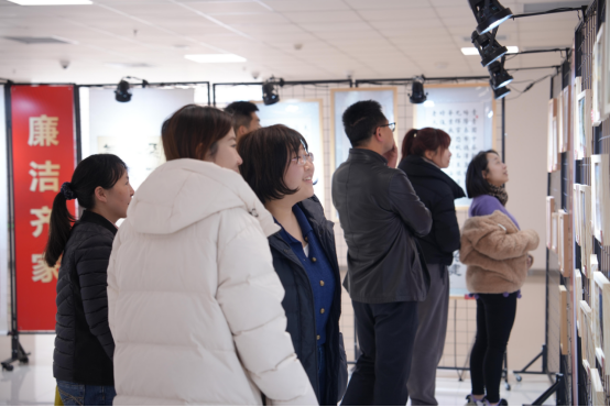 仪式后,“廉风清心”宣讲团带领参观。大家或驻足凝视,于廉洁书画中感悟笔墨间的清风正气;或俯身细看,在廉洁文创展柜前品味作品蕴含的初心。“廉洁铭心”互动展区的留言板上,字迹满满、落笔不断。自2026年1月起,廉洁文化作品展已在院校北区巡展,各所院正陆续组织参观。