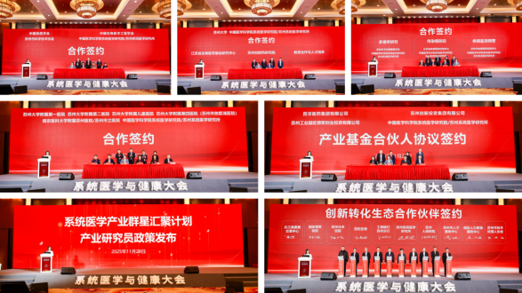 会上,还举办了系统所、苏州市科协与中国生物医学工程学会、中国免疫学会,系统所与苏州大学,系统所与江苏省疾控中心、苏州市卫健委、苏州市疾控中心,系统所与苏大附一院、附二院、附属儿童医院、附四院以及市立医院,产业基金合伙人协议,创新转化生态合作伙伴等签约,并发布系统医学产业群星汇聚计划及产业研究员政策。