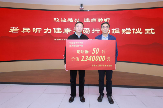2026年1月19日下午,“致敬荣光,健康聆听”老兵听力健康关爱行动捐赠仪式在中国医学科学院北京协和医学院吴宪大楼举行。中国听力医学发展基金会向院校捐赠总价值134万元的50台高品质助听器,专项用于改善院校老年退役军人听力健康。院校党委书记、副院校长邓海华,党委副书记张勤,中国听力医学发展基金会监事长张元禄,党支部书记、常务副理事长兼秘书长公泽忠,执行副秘书长甄丽霞等出席仪式。院校相关所院分管领导、离退休工作部门负责人及受助退役军人代表共同见证。仪式由院校党委副书记张勤主持。