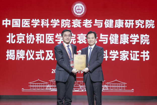 在全体与会人员见证下,巴德年院士、赵玉沛院士、邓海华书记、吉训明院校长共同为中国医学科学院衰老与健康研究院、北京协和医学院衰老与健康学院揭牌。