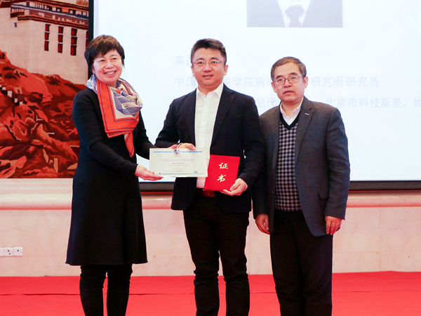 病原生物学研究所高磊研究员颁发奖牌和证书