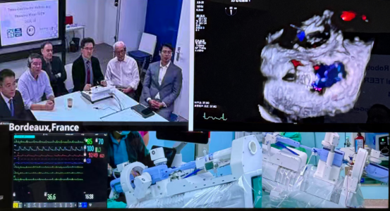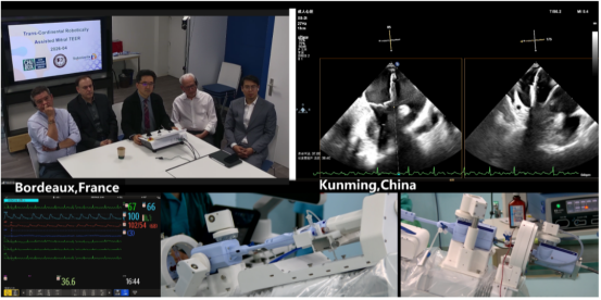 潘湘斌与诸多国际顶尖心血管病专家在法国通过洲际远程机器人在云南阜外医院进行超声引导介入二尖瓣缘对缘修复