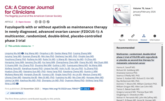 FZOCUS-1研究既标志着我国在卵巢癌治疗领域的突破性进展获得国际权威高度认可,也为全球晚期卵巢癌患者维持治疗的选择再添力证。