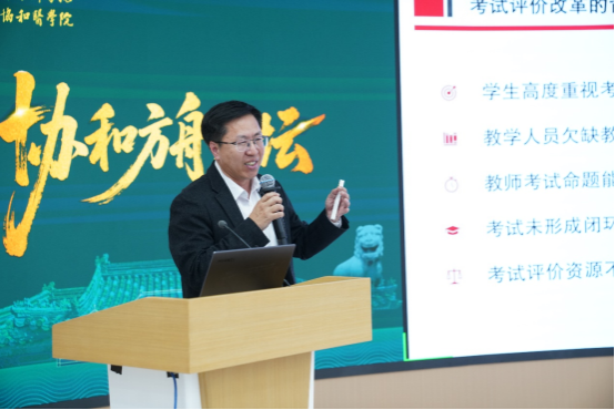 潘慧副院校长在开场讲话中深刻阐述了本期论坛的背景与现实意义。他指出,当前我国医学教育正迈入高质量发展的新阶段,教育评价事关教育发展方向,要扭转不科学的教育评价导向,持续提升教育治理能力和水平。考试评价作为教育教学的关键环节,既是检验人才培养质量的“度量衡”,也是引导教学改革、促进学生发展的“指挥棒”。深化考试评价改革,不仅是落实国家政策要求的政治自觉,更是提升医学人才培养质量的内在需要。