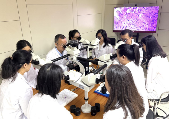 作为国家临床病理科住培重点基地负责人,应建明推动教学改革,深入融合病理学科特色与智慧教学手段,构建起“分层递进、数字赋能、协同共享”的教学体系,实现从组织到分子、从影像到临床的全方位融合,显著提升培养成效。科室为每一位学员建立电子成长档案,实时记录工作量、能力发展和科研进展。